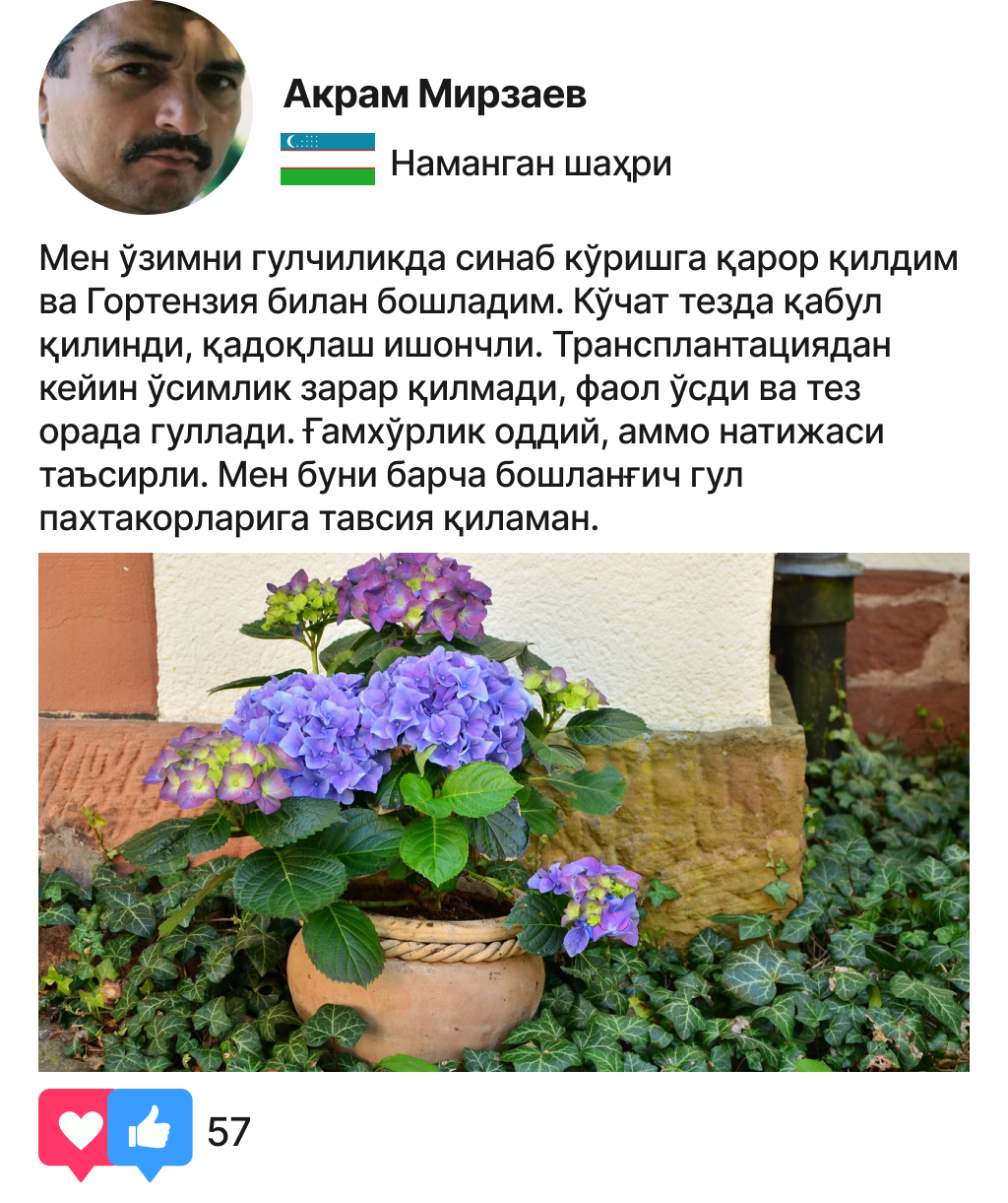 Ўзингизнинг эксклюзив гортензияларингизни ўстиринг ва ҳар куни чиройли гуллардан баҳраманд бўлинг!